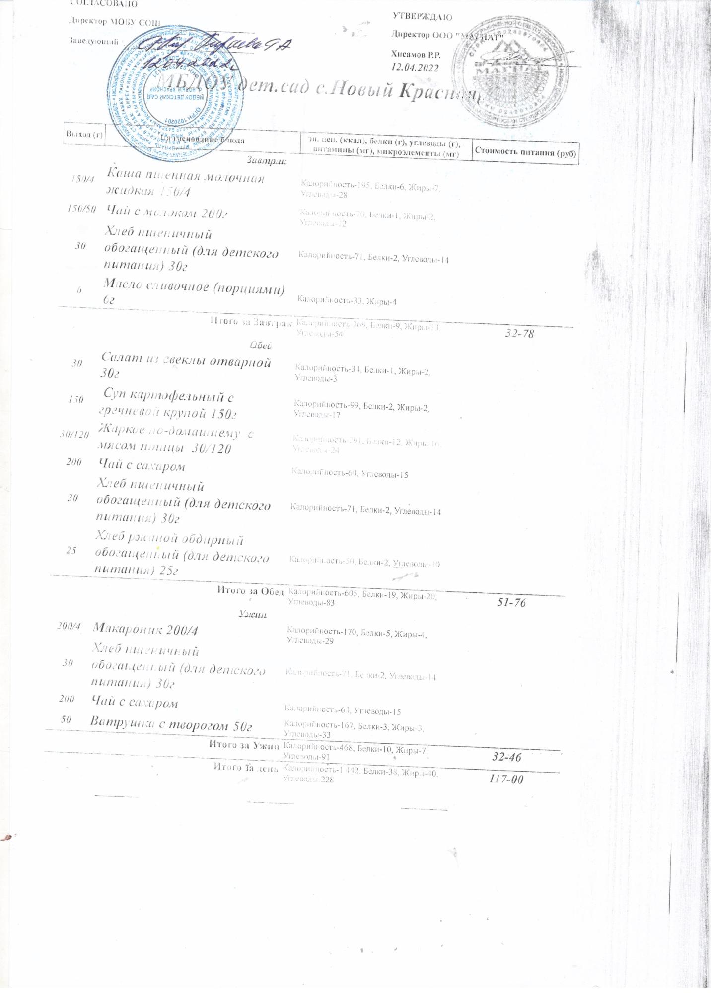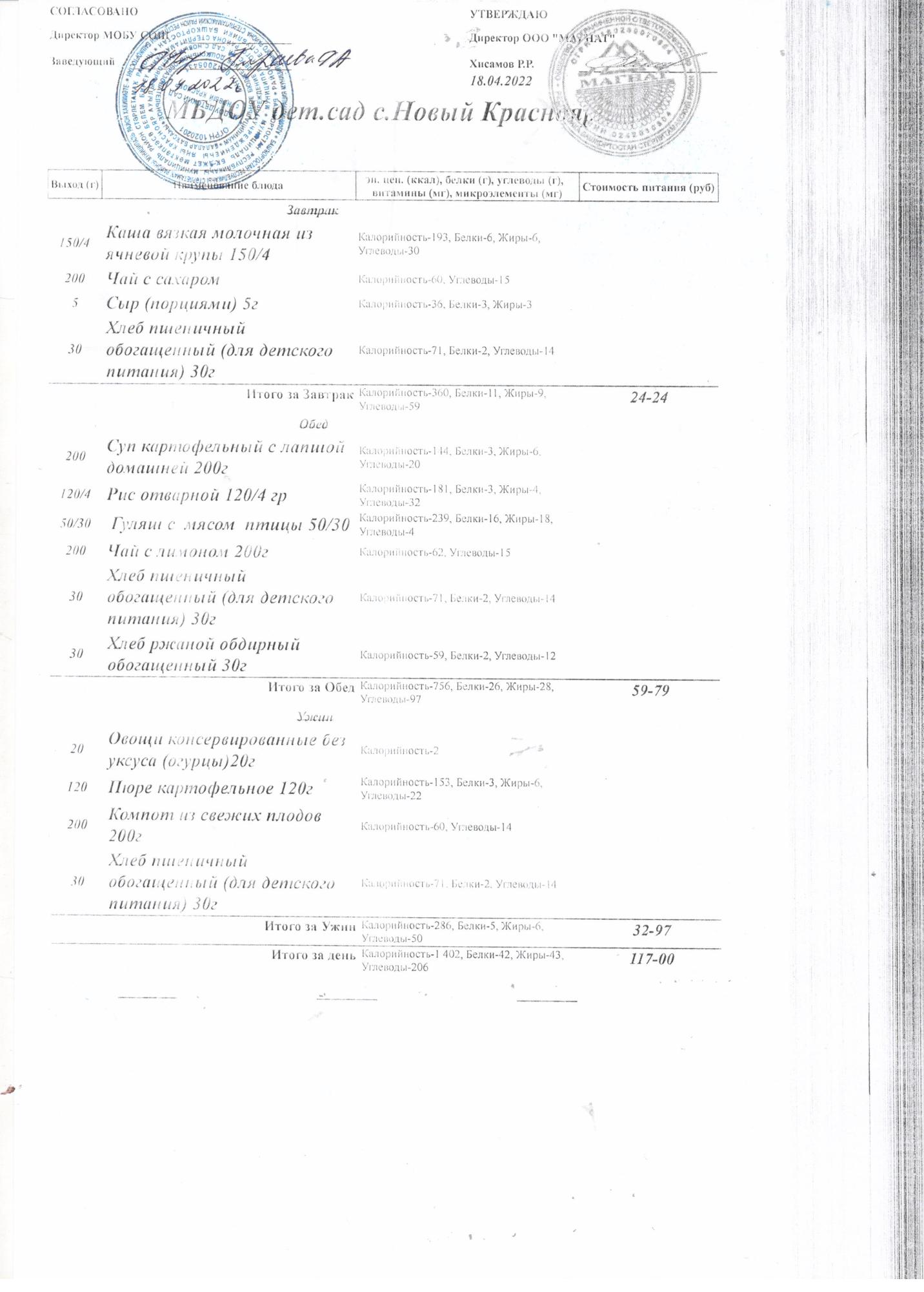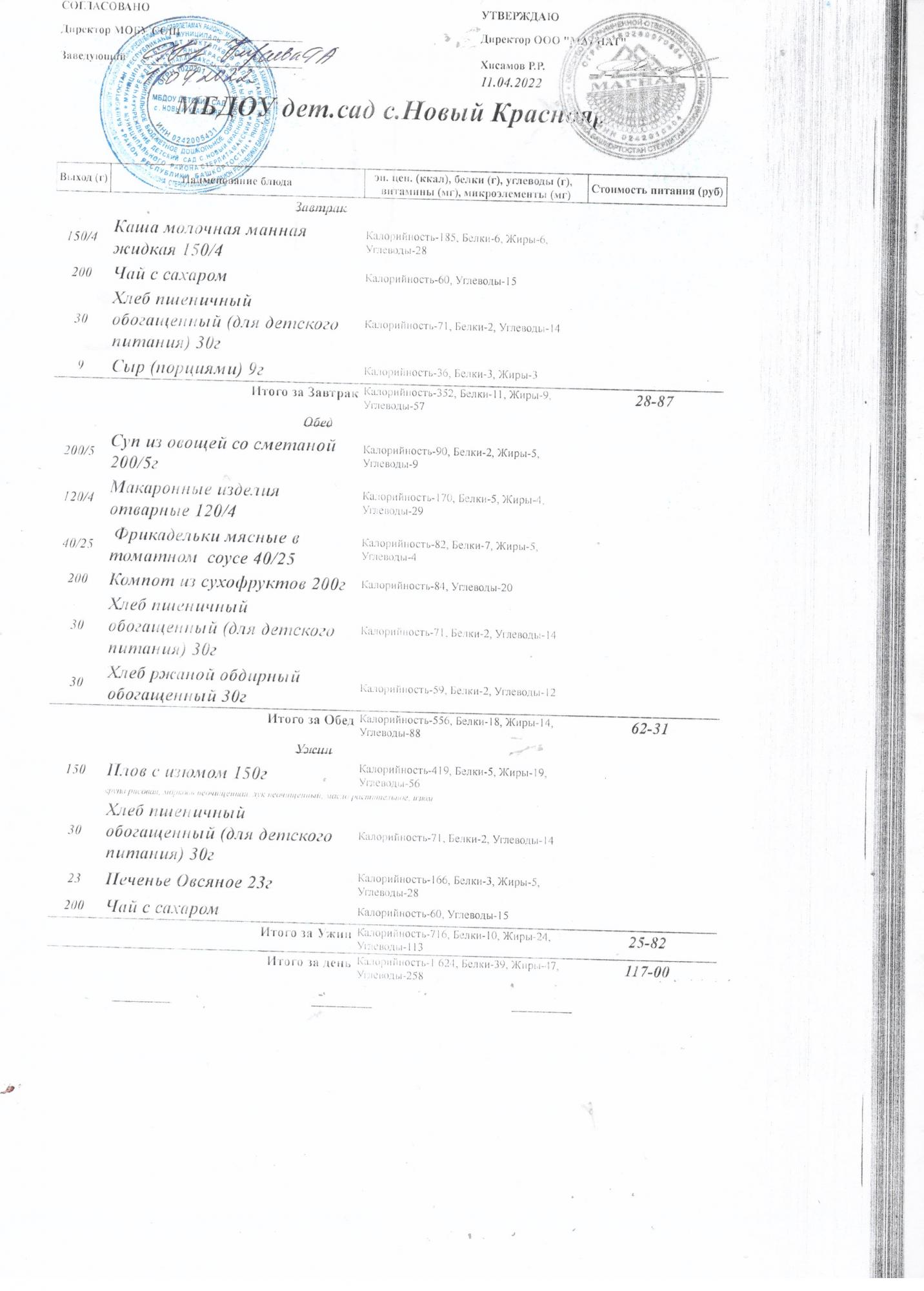 Десятидневное меню