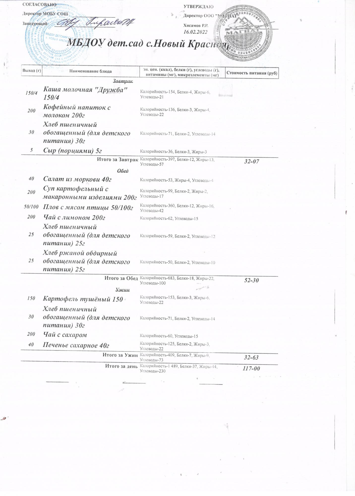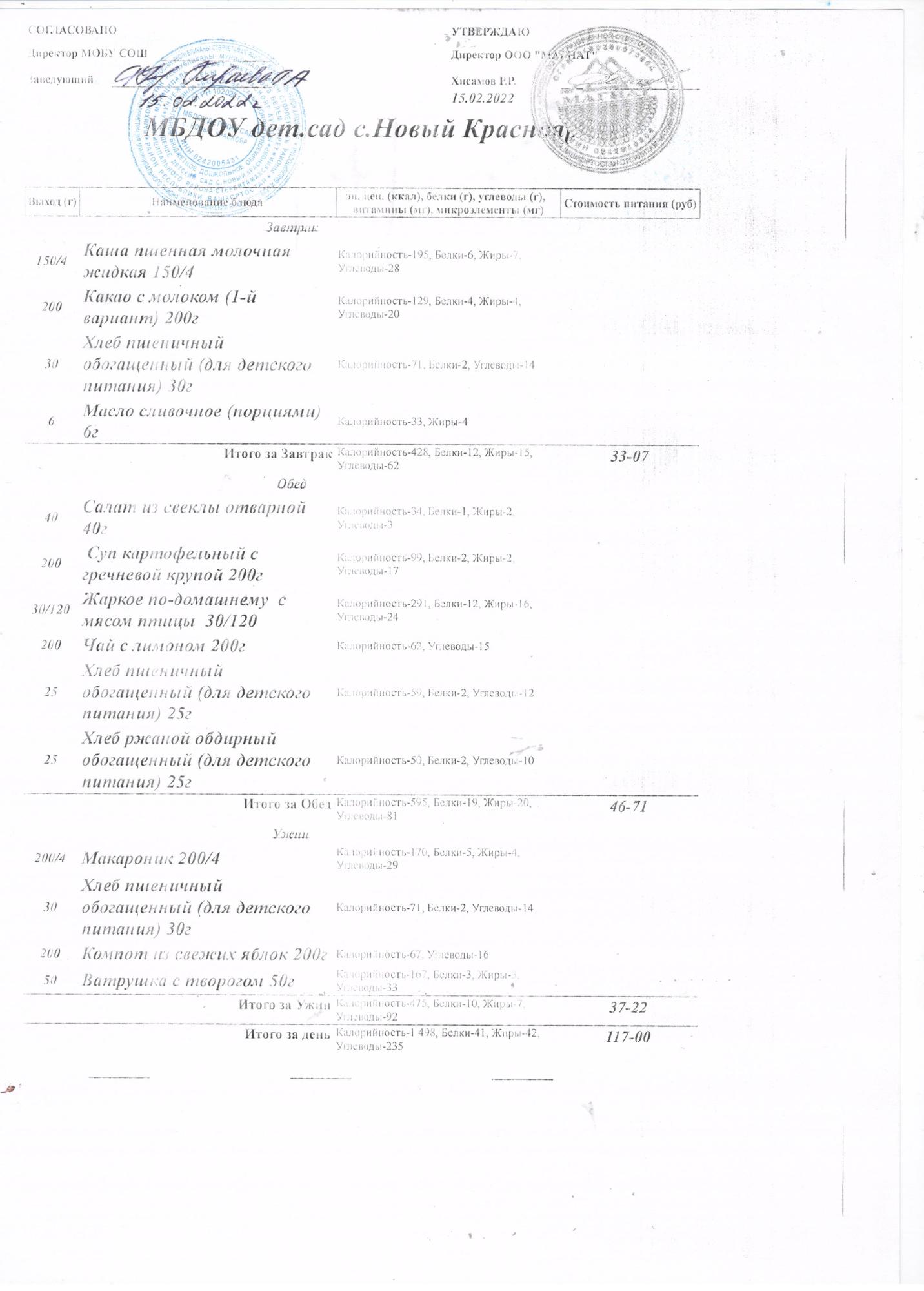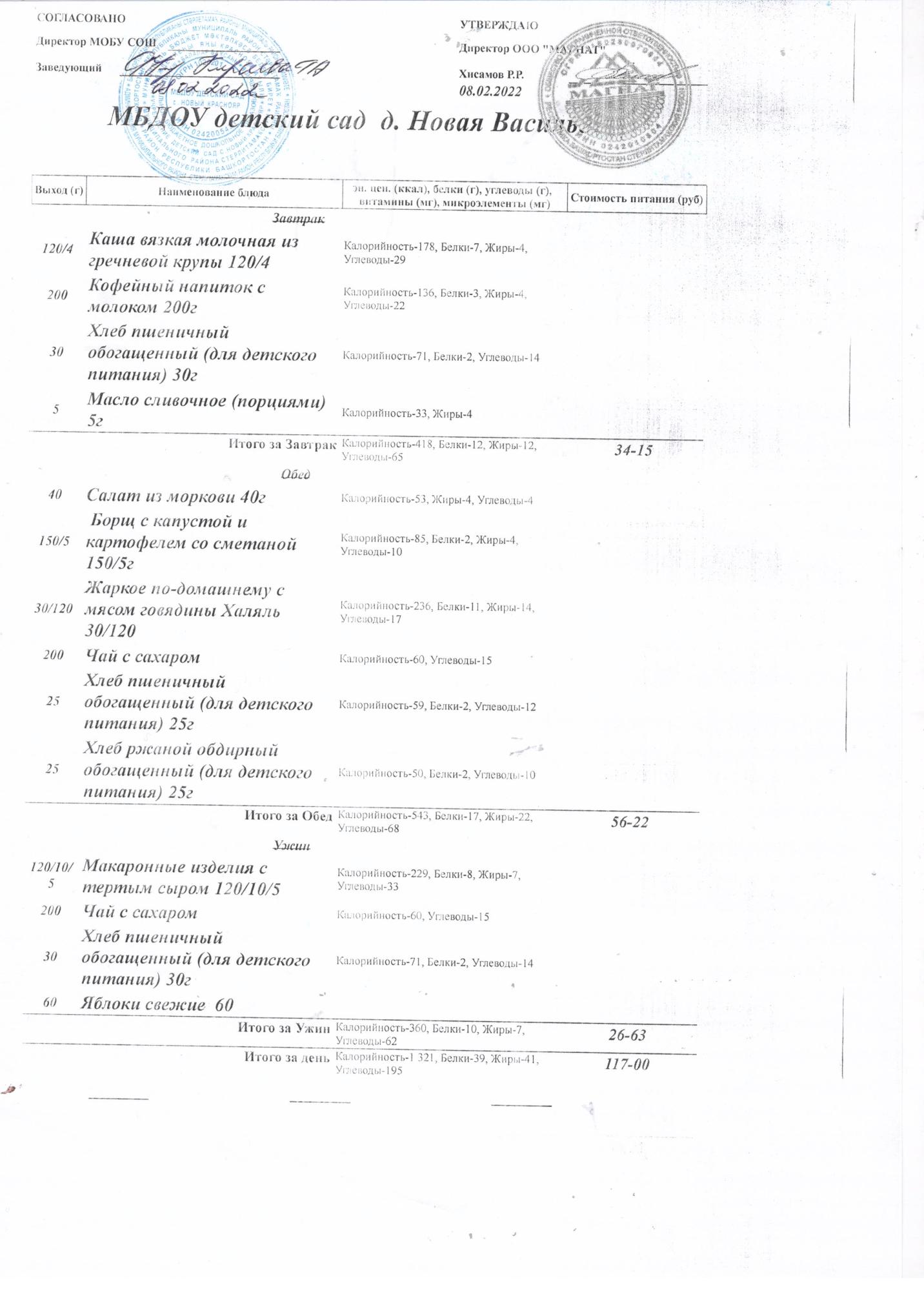 Стоимость питания